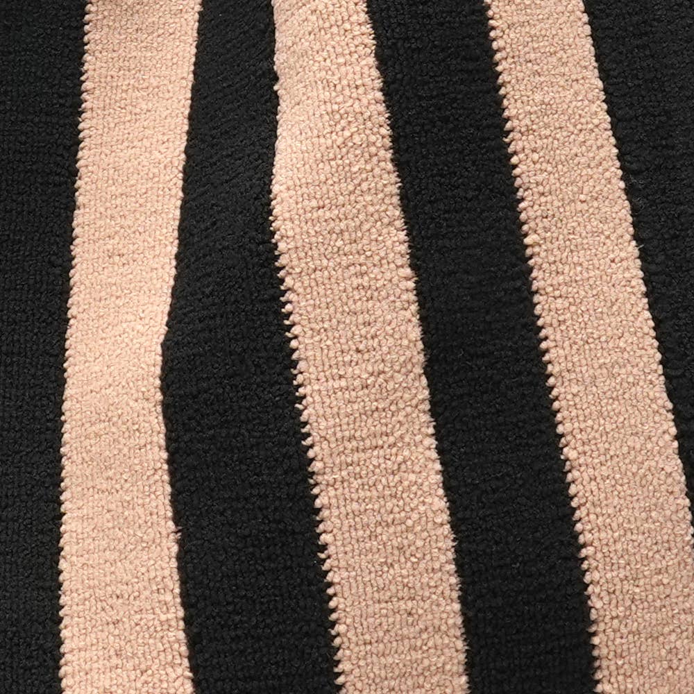 Diese hübsche gestrickte gestreifte Tasche ist perfekt für Besorgungen oder um Ihrem Arbeitstag einen stilvollen Touch zu verleihen. Hergestellt aus 100% Polyester, schließt sie sicher mit einem Magnetknopf. Natürlich ist das LOT83-Tag aus veganem Leder ein herausragendes Merkmal dieser gestrickten Tasche.